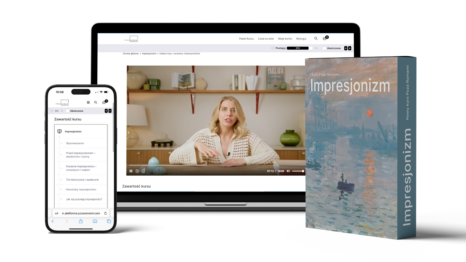 - Aby dołączyć do kursu, wystarczy mieć dostęp do internetu i być zalogowanym na konto na platforma.pozaramami.com